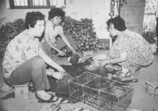 1993年,北海市珍珠公司的白蝶母贝植核取得成功,南珠养殖向多贝种扩展。 (右一为时任总经理何秀英女士)