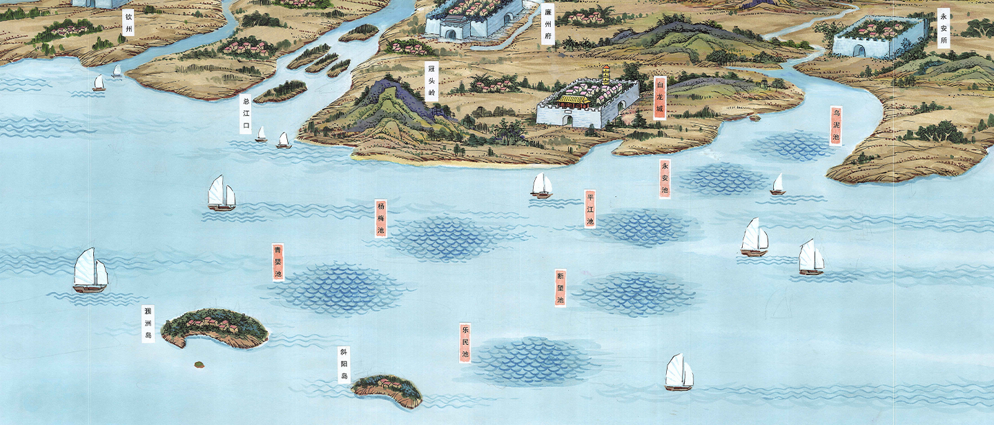 According to the works by Song Yingxing, a scientist in the late Ming Dynasty, recorded that in the absence of protective measures, the pearl farmers dive into the deep sea to collect pearls with their bare hands. Therefore, there are sayings that “you can't get a pearl with a human being”, “a pearl from thousand tears”, and “a pearl from ten thousand bones”. The Bailong Pearl City was built in the early years of Hongwu in the Ming Dynasty, where is the residence of eunuchs sent by the imperial court to supervise the pearl industry. The city wall was filled with earth and pearl shells, which were destroyed during the War. In 1992, the south gate was rebuilt.